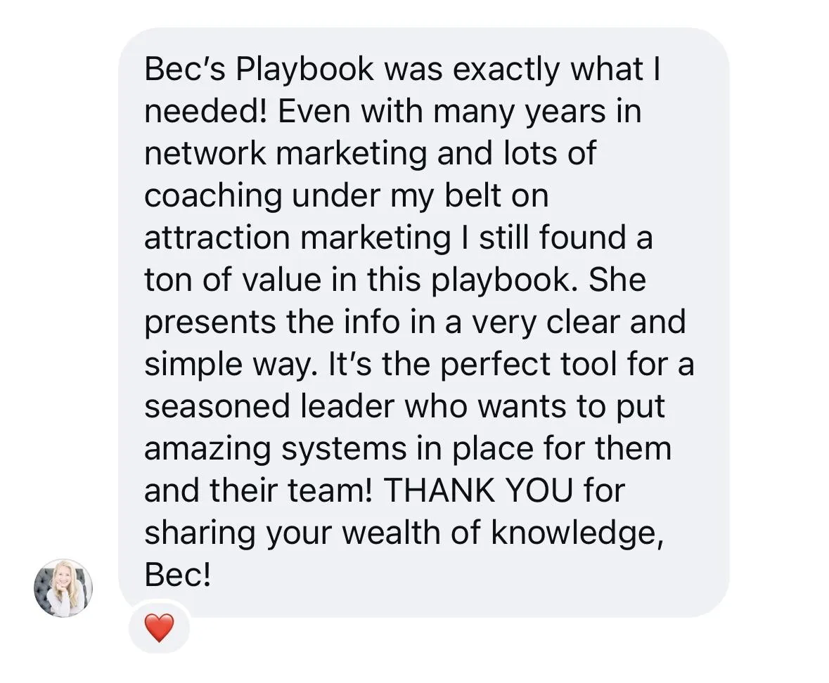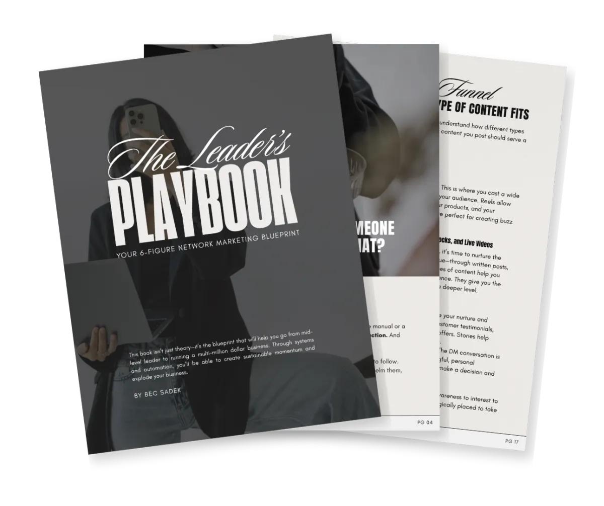 The Leader’s Playbook by @becsadek is your blueprint to build your 6-figure network marketing business. This is a 50 page PDF file available for immediate download and implementation.